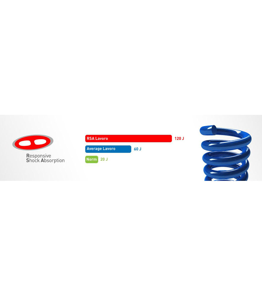 A Lavoro RSA Technológia esetén azonban eléri a 120 Joule energia semlegesítést!!Ez 6x magasabb,mint a szabvány által minimálisan támasztott követelmény!