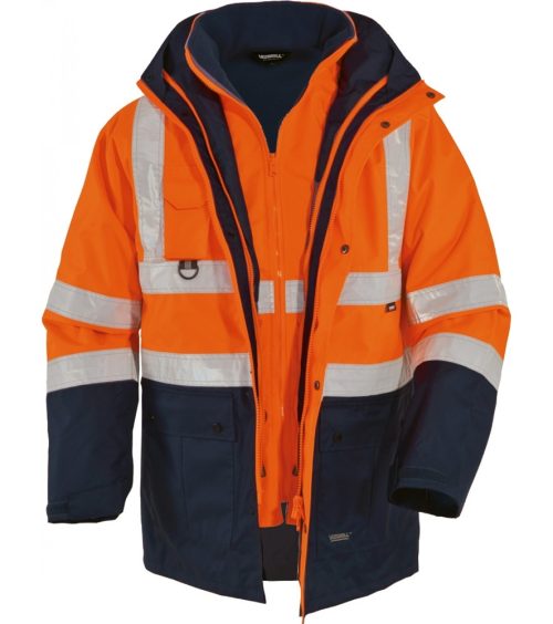 EN ISO 20471 3. osztály, EN 340 szabványnak megfelelő jó láthatóságot biztosító téli védőruha, 2-in-1 softshell télikabát, amely mellényként is viselhető. Az innovatív téli bélés magas hőszigetelése, jó légáteresztő képessége révén, rendkívül könnyű és kényelmes viseletet nyújt.