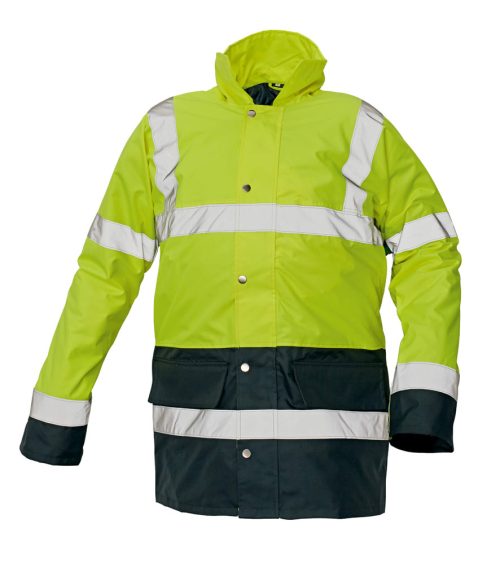 EN ISO 20471 3. osztály, EN 340 szabványnak megfelelő jó láthatóságot biztosító téli védőruha, 2-in-1 softshell télikabát, amely mellényként is viselhető. Az innovatív téli bélés magas hőszigetelése, jó légáteresztő képessége révén, rendkívül könnyű és kényelmes viseletet nyújt.