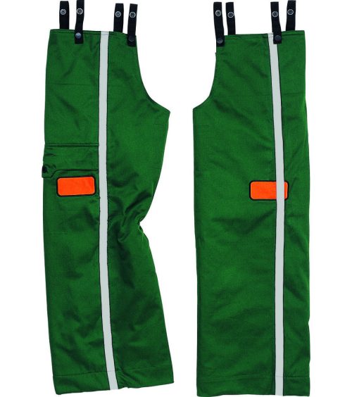 Vágásbiztos lábszárvédő. Belső cipzárral nyitható. Patentos tartópántok. 1 zseb.