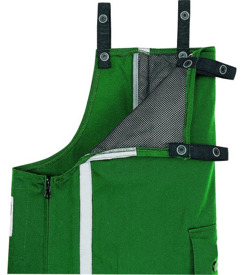 Vágásbiztos. Cipzárral nyitható nadrágalj. 5 zseb. Zöld.
