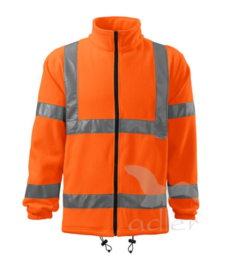 Polár dzseki fluoreszkáló anyagból. Két elülső cipzárral összehúzható rejtett zseb. Nyomásra és hímzésre alkalmas.