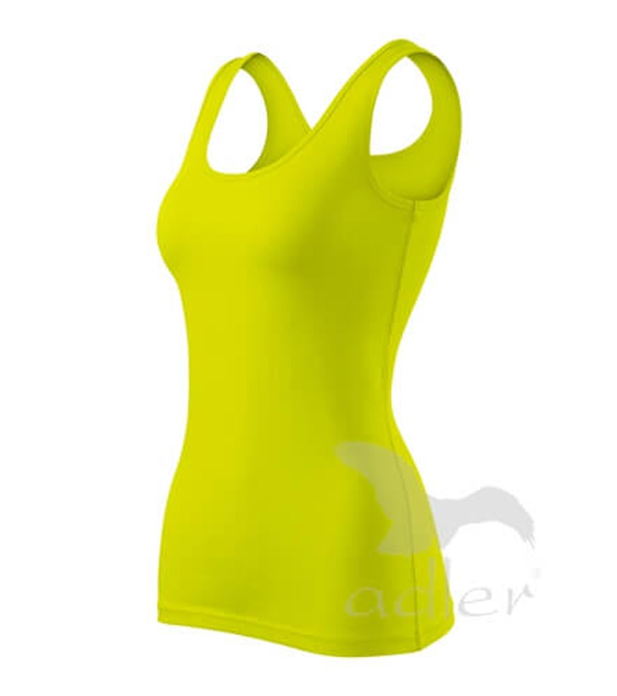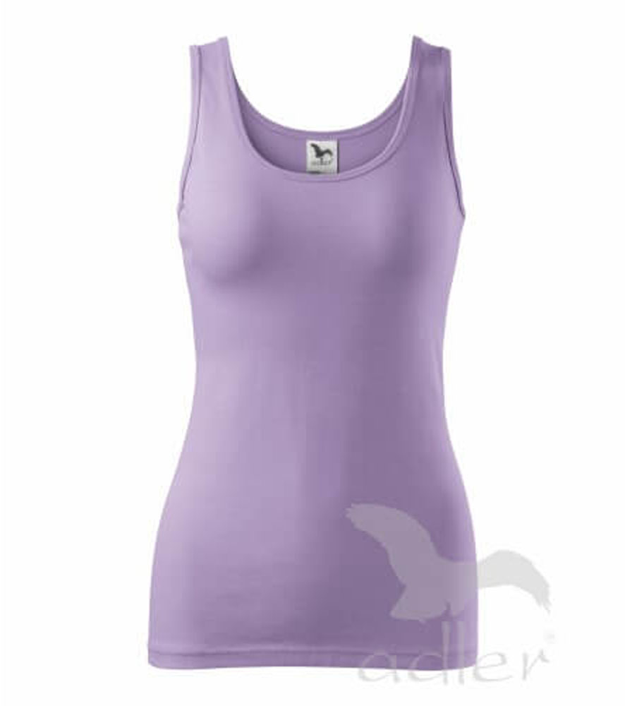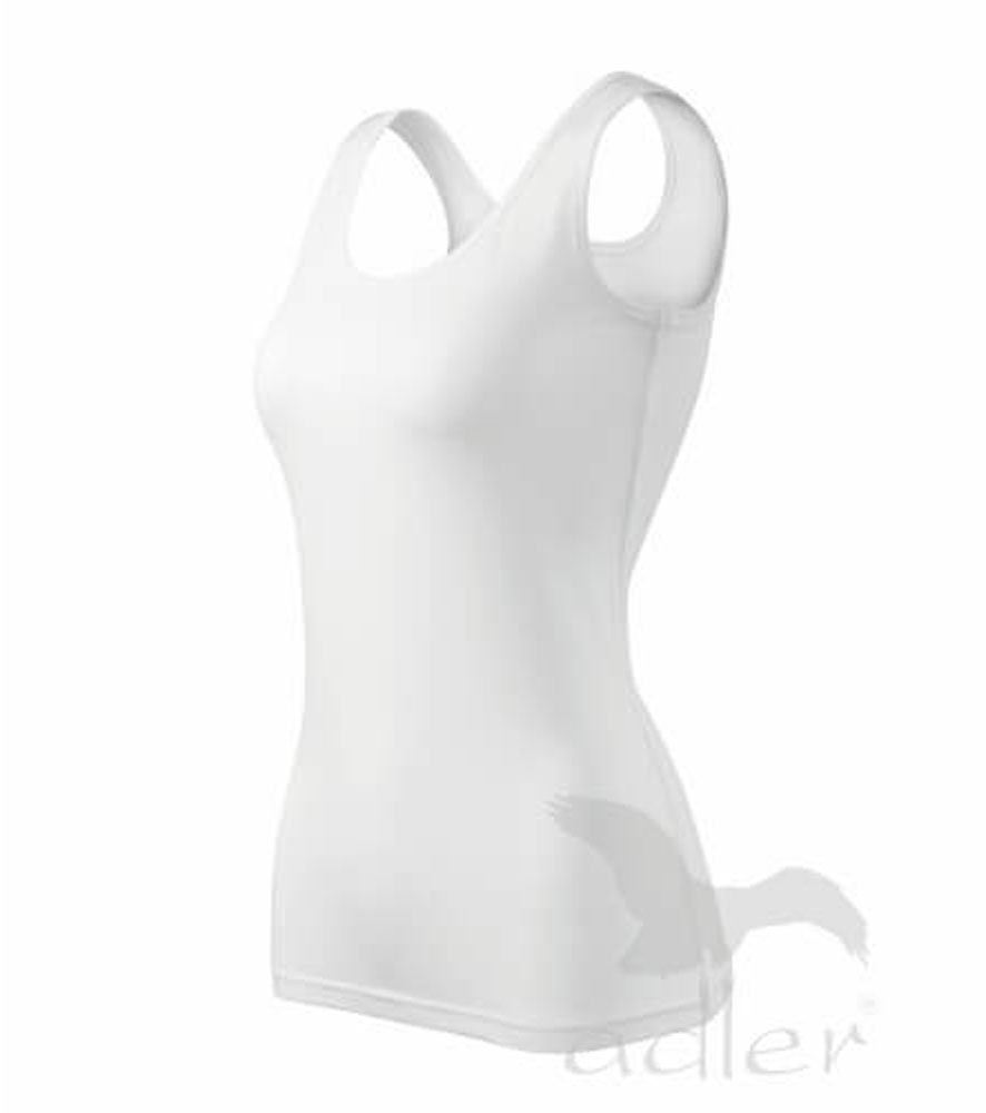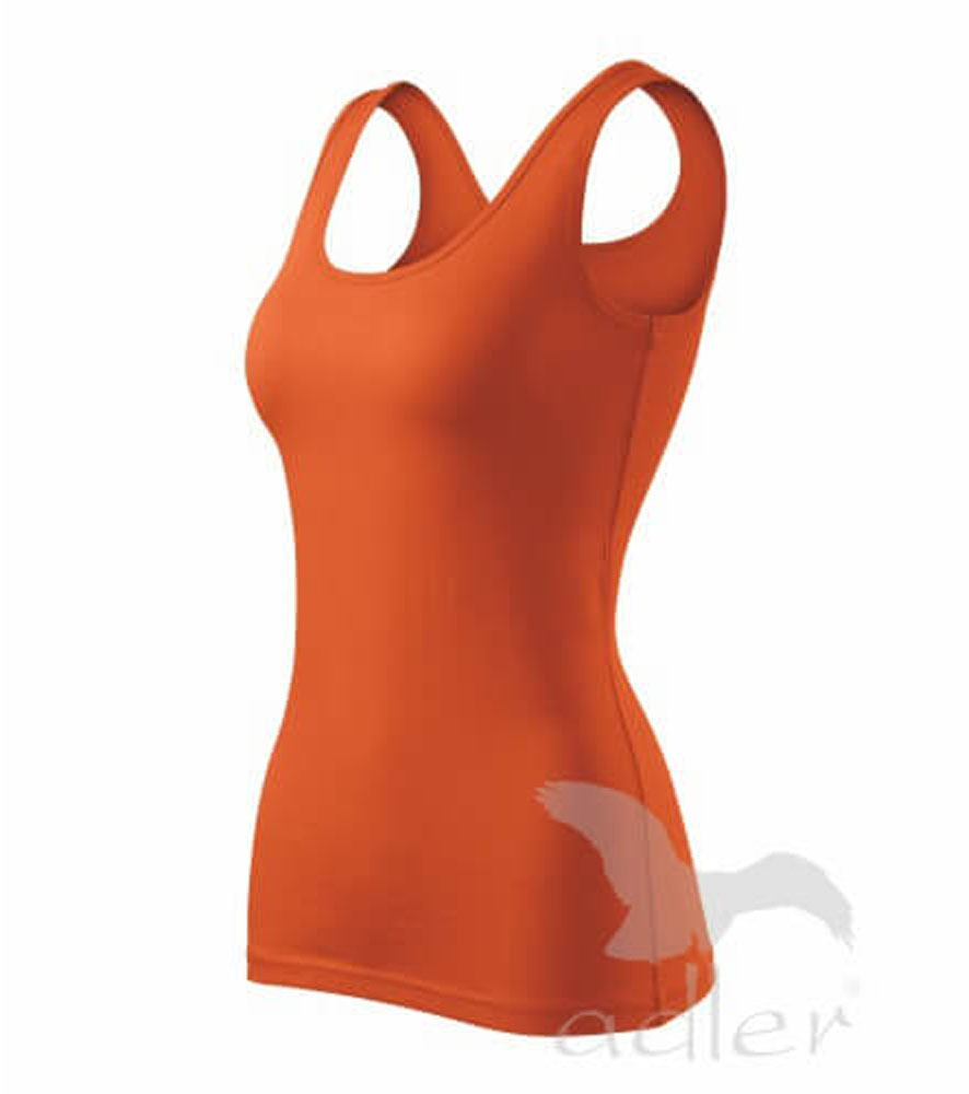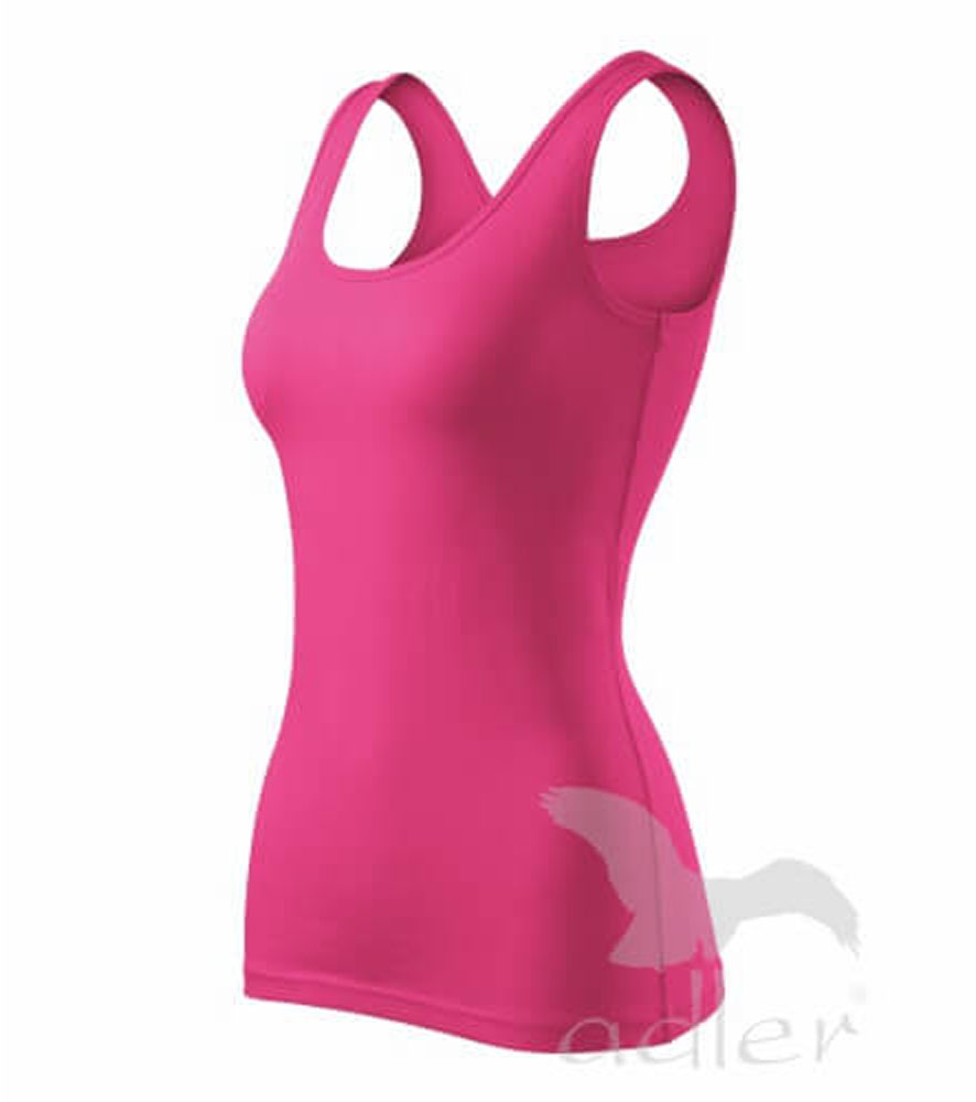 Szűk ujjatlan női felső, széles pántokkal. Megnövelt hosszúság. Kellemes anyag 5 % spandex adalékkal, ami biztosítja a póló alaktartását. Nyomásra és hímzésre alkalmas.