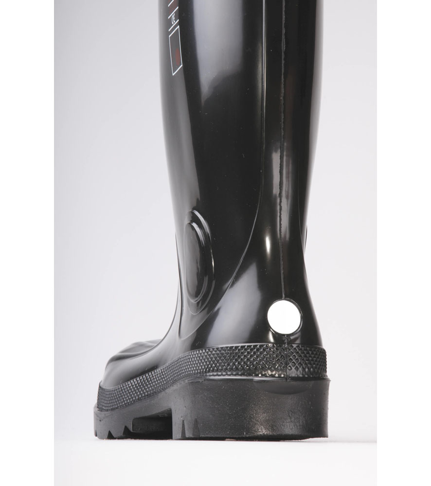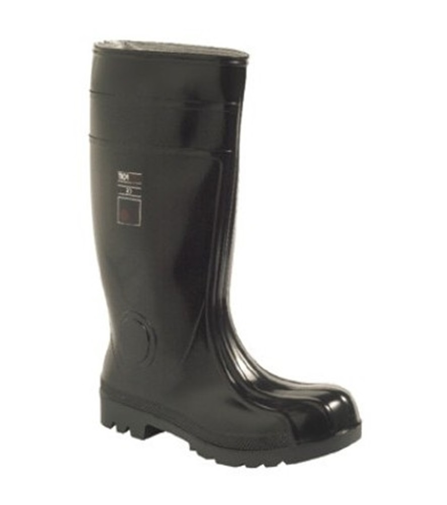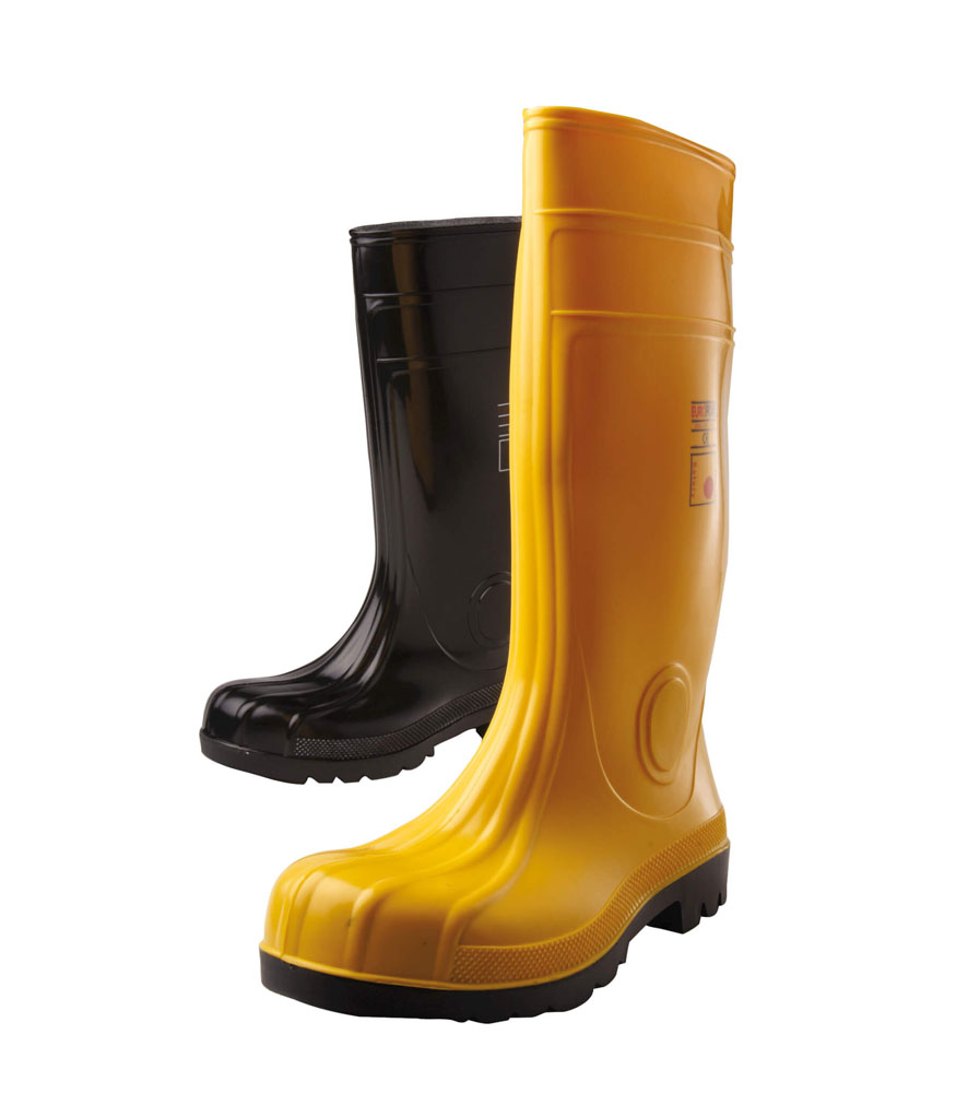 PVC/nitril biztonsági csizma, acél orrmerevítővel és korrózió álló köztestalppal.