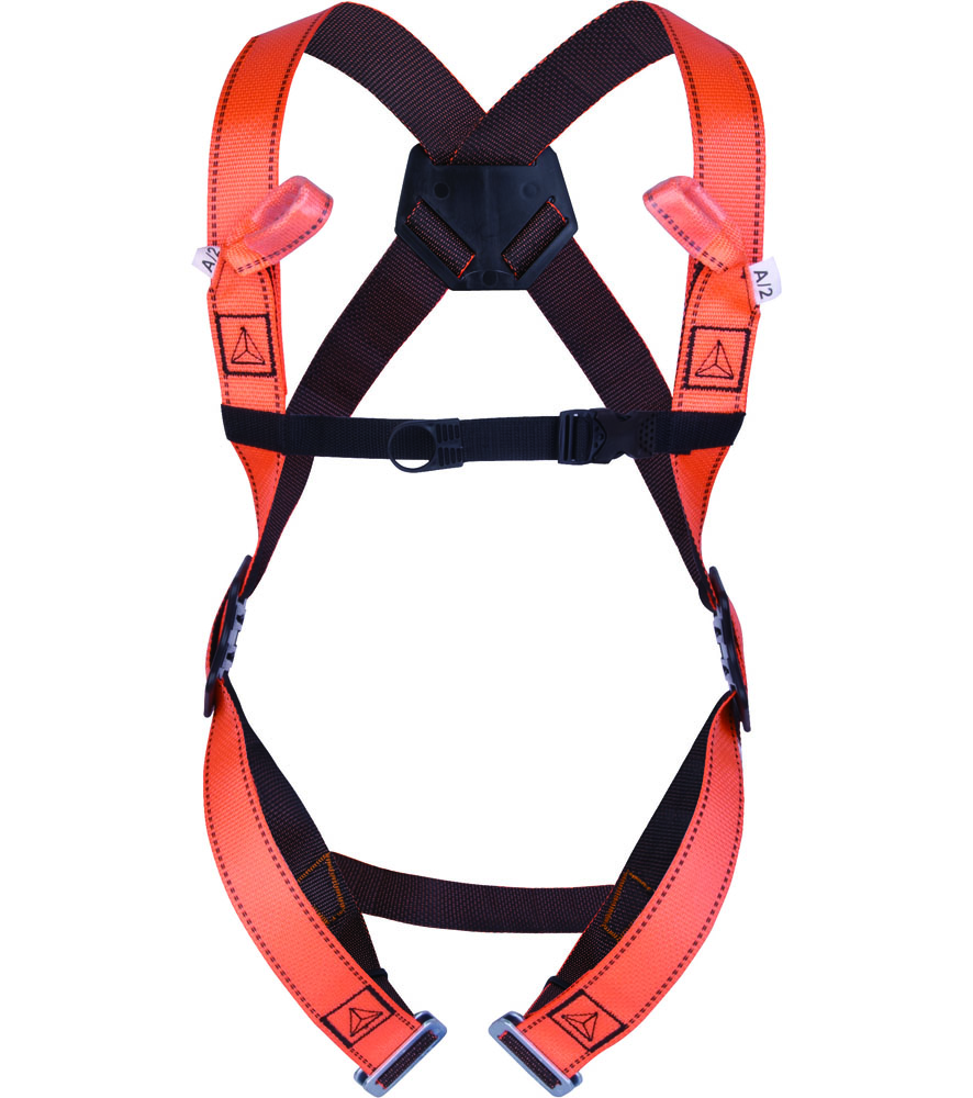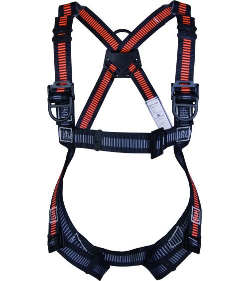 Zuhanásgátló testhevederzet 2 bekötési ponttal (hátsó – mellső). 2 állítható csat.