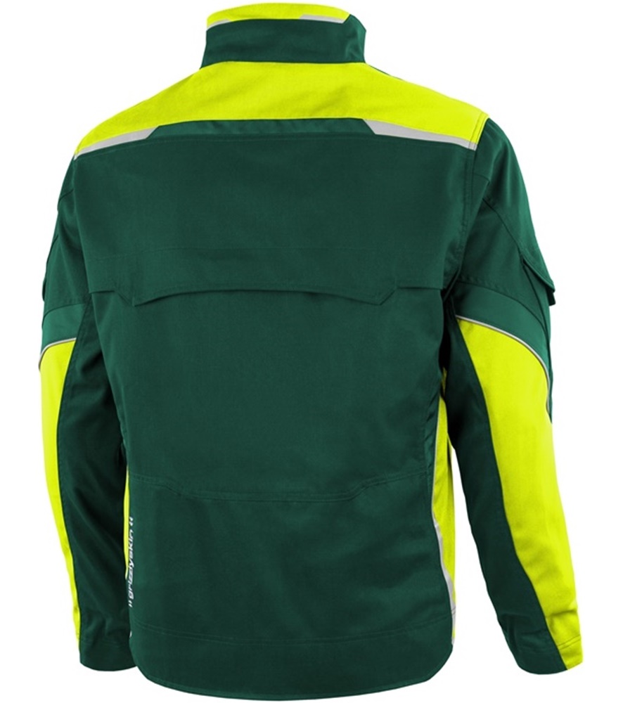 - Többrétegű kialakítású kibővített hátrész, a kabát két oldalsó részeibe hajlított kontraszt Cordura betétekkel és fényvisszaverő csíkokkal