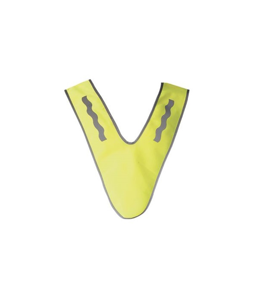 Felnőttek részére, sárga figyelmeztető vállpánt, ezüst fényvisszaverő csíkkal. 49cm.