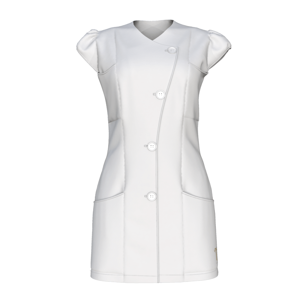 Fehér női egészségügyi tunika, mely 90 C° fon is mosható.