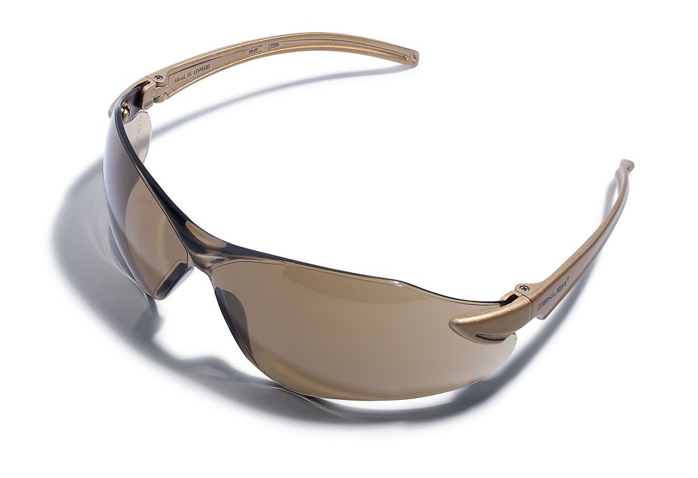 Barna lencsés, keret nélküli, napszemüvegnek is használható védőszemüveg.